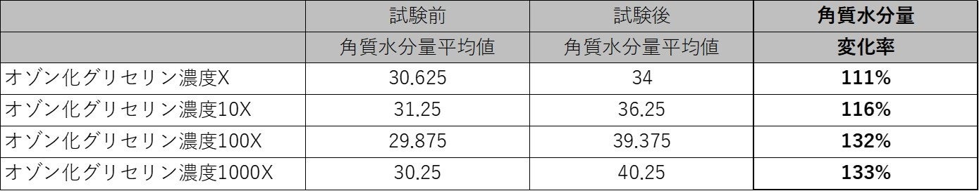 濃度を4段階に振り、オゾン化グリセリンを皮膚に3週間にわたり塗布
