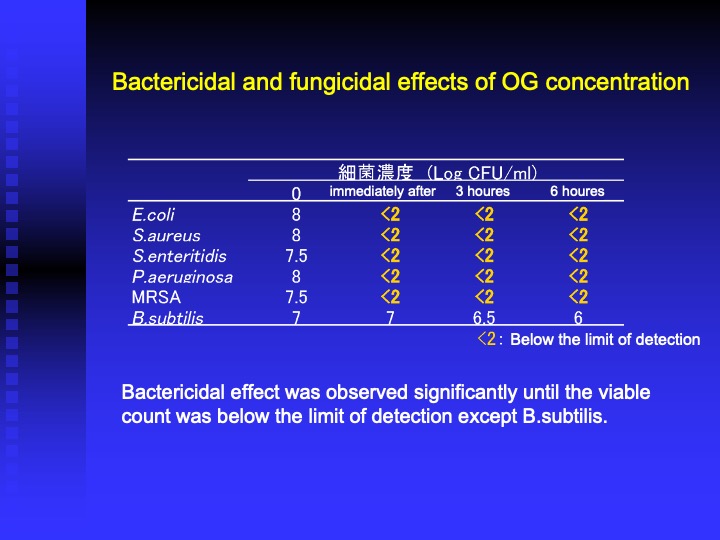 ・Bactericidal and fungicidal effects of 100 ppm OG